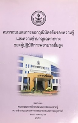 สมรรถนะและการออกวุฒิบัตรรับรองความรู้และความชำนาญเฉพาะทางของผู้ปฏิบัติการพยาบาลขั้นสูง / สมจิต หนุเจริญกุล, บรรณาธิการ