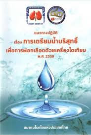 แนวทางปฏิบัติเรื่องการเตรียมน้ำบริสุทธิ์เพื่อการฟอกเลือดด้วยเครื่องไตเทียมพ.ศ. 2559 / บรรณาธิการ, กลศร ภัคโชตานนท์, วุฒิเดช โอภาศเจริญสุข